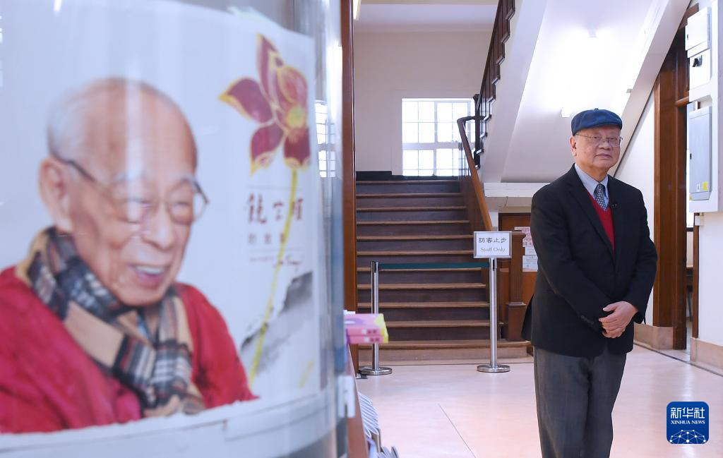 李焯芬站在饶宗颐学术馆内(1月24日摄)。新华社记者 陈铎 摄