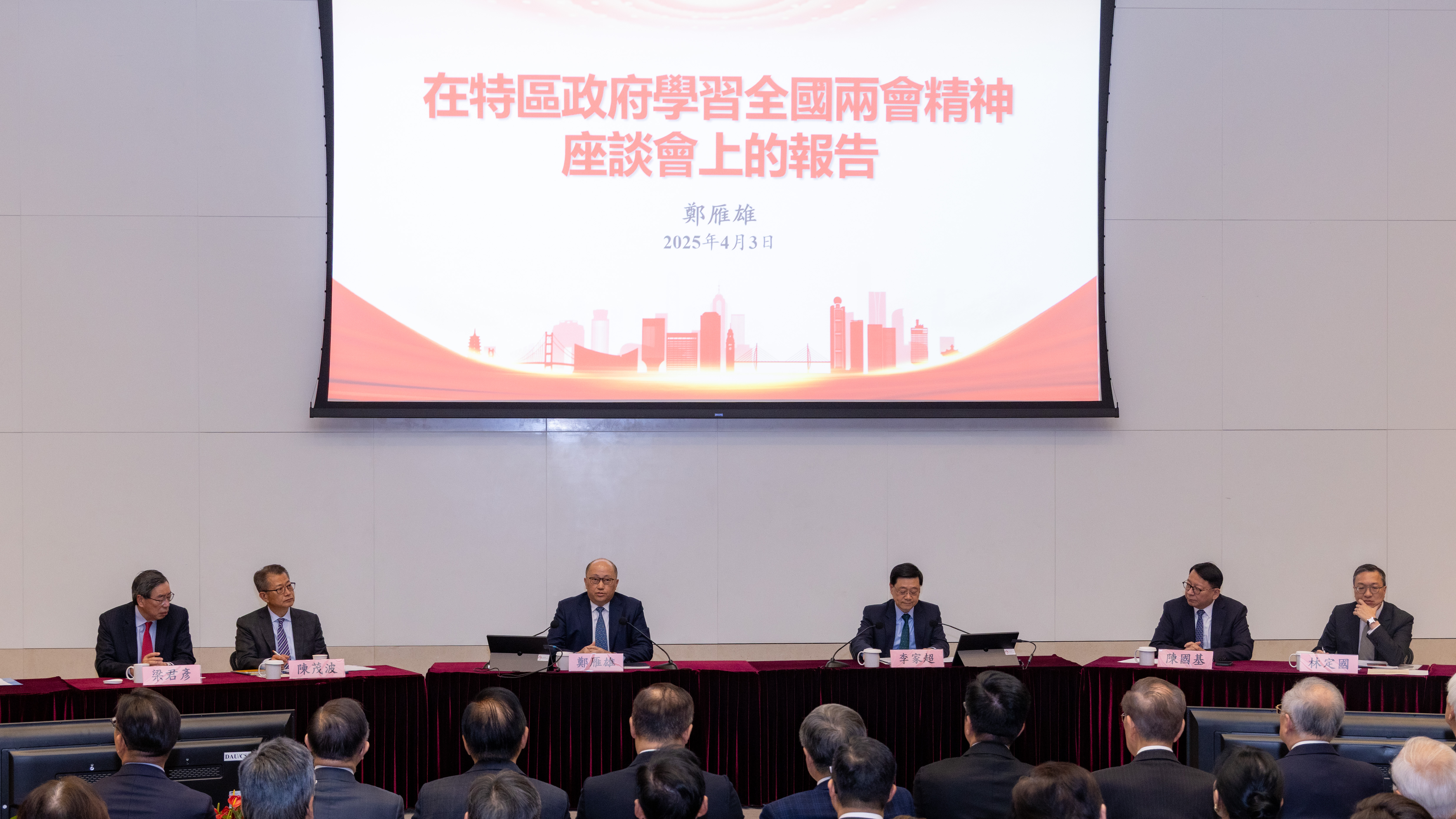 本网讯 4月3日,香港特区政府举办学习全国两会精神座谈会,行政长官李家超主持。中央政府驻港联络办主任郑雁雄应邀出席并作交流分享。