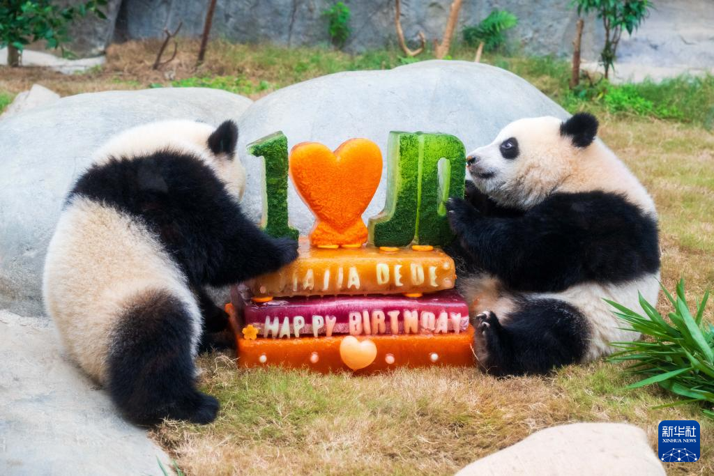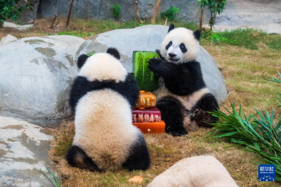 一年前,“加加”“得得”呱呱坠地,母亲“盈盈”也成为全球最高龄初次产子的大熊猫。作为第二对中央政府赠港大熊猫“盈盈”和“乐乐”的后代,“加加”“得得”的成长牵动人心。出生时,“加加”体重约122克,“得得”约112克。在香港海洋公园护理团队24小时的轮流照顾下,两只“软糯小团子”快速成长。如今,它们的体重已超过30公斤,能听懂部分指令和自己的名字,还开始循序渐进地学习吃竹叶等食物。
