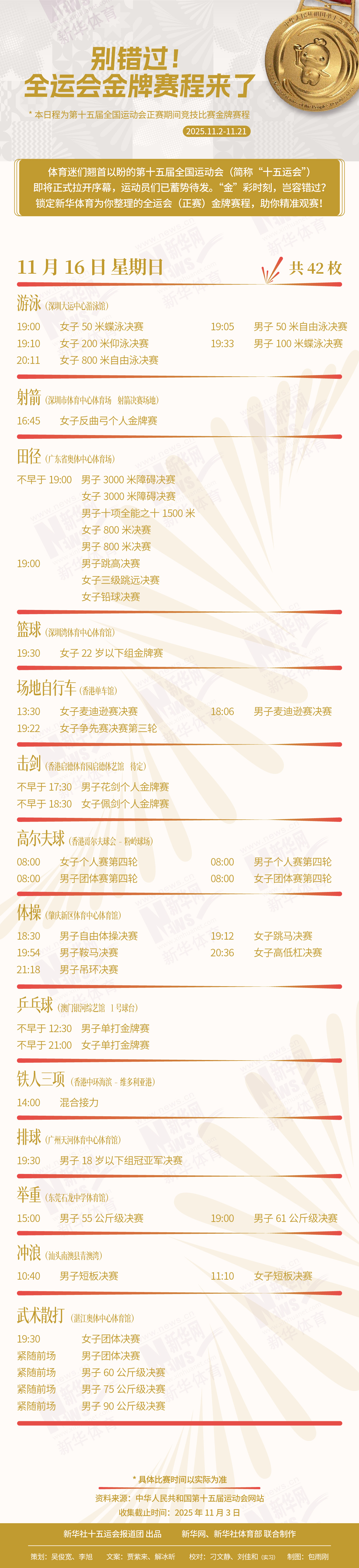 别错过!这届全运会金牌赛程来了