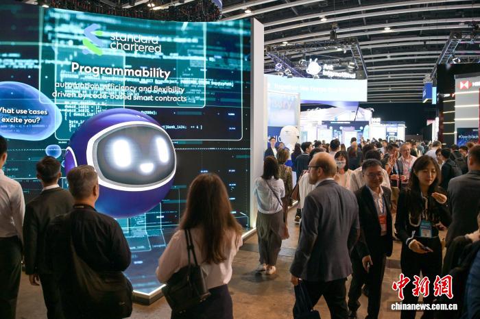 11月3日,“香港金融科技周及StartmeupHK创业节2025”在香港会议展览中心举行。本次活动设有专题论坛,分享行业意见,探讨推动业务成果的前沿科技;另设有专题展览,展示新兴技术的应用方案。图为现场人士参观展览。中新社记者 陈永诺 摄