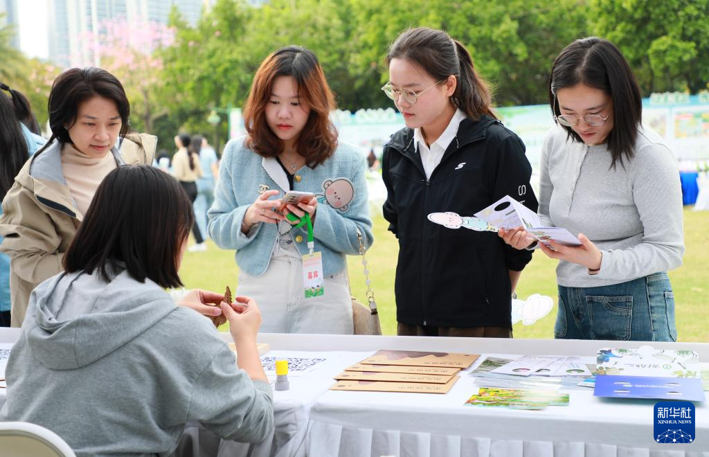 12月12日,观众在自然教育市集了解手工制作。新华社记者 王瑞平 摄