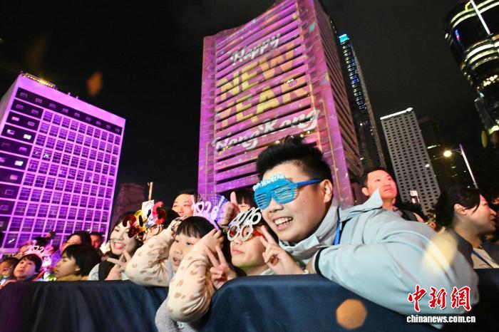 2025年12月31日晚,在香港跨年倒数活动上,中环8座大厦的外墙展示巨型倒数时钟,并展示以“新希望·新开始”为主题的光影图案,向本地及全球观众送上祝福。中新社记者 李志华 摄