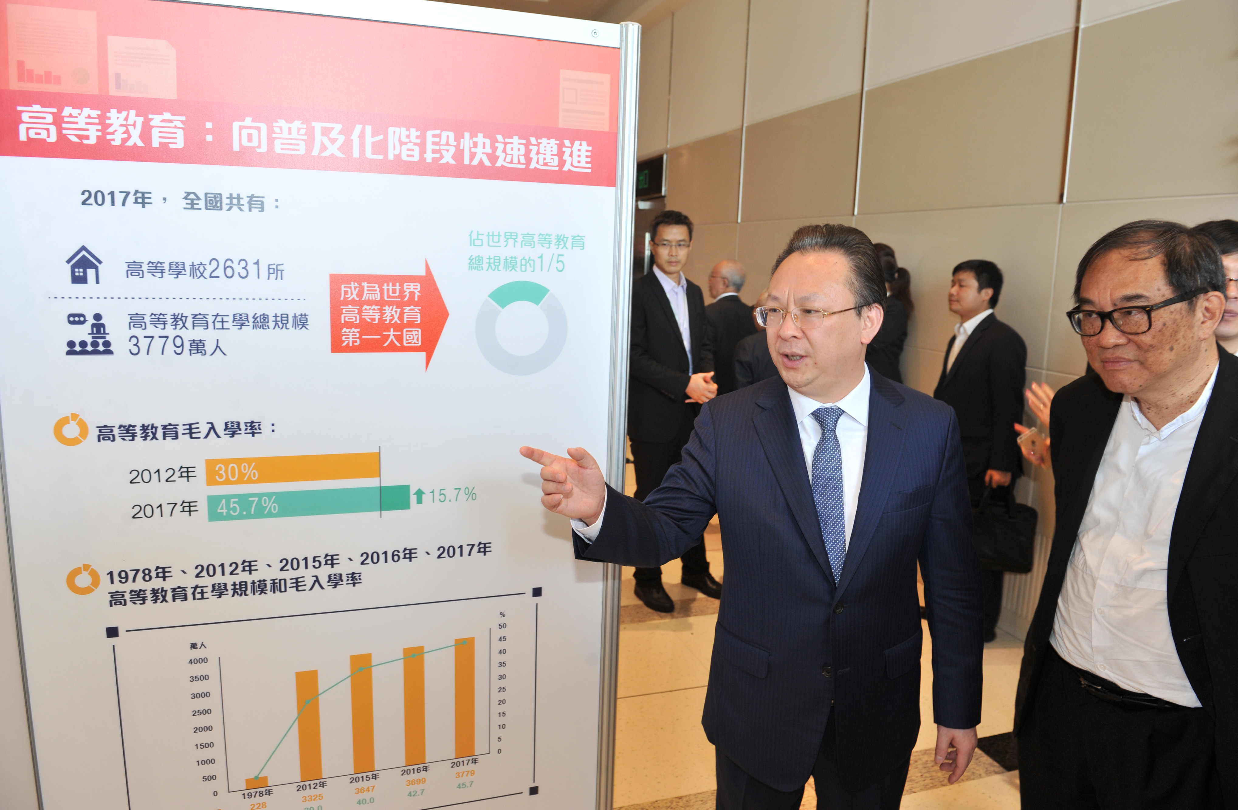 ?谭铁牛副主任向来宾介绍内地高等教育。(图片来源:中央政府驻港联络办)?