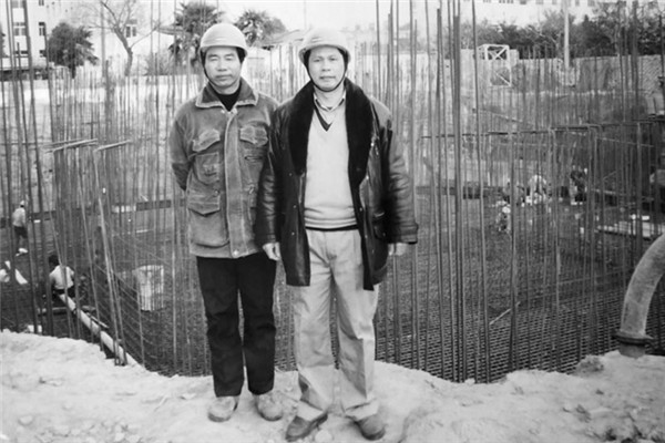 改革开放初期,吴换炎将他的塑料五金工厂从香港搬到深圳。图为吴换炎(右一)在他正在建设的深圳厂房边。