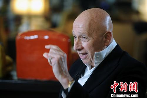 兰桂坊集团主席盛智文对中新社记者谈及亲身经历中国改革开放40年来的变化。中新社记者 谭达明 摄