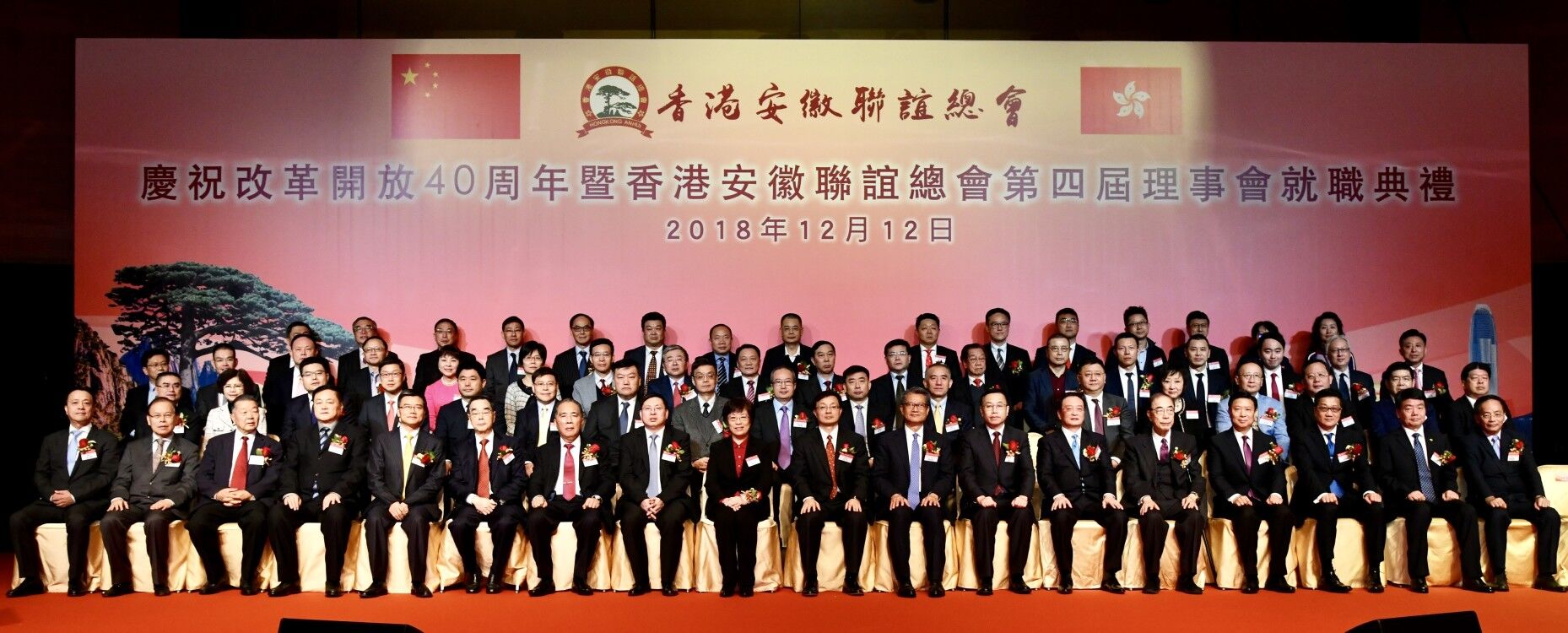 本网讯 12月12日,香港安徽联谊总会举行庆祝改革开放40周年暨第4届理事会就职典礼,我办副主任何靖应邀出席,并与特区政府财政司司长陈茂波,外交部驻港特派员公署副特派员宋如安,安徽省委常委、统战部长刘莉等共同主礼。皖籍在港乡亲及香港各界人士约 800人参加活动。