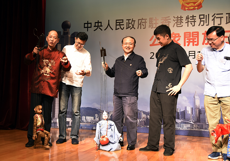王志民主任与来宾一同体验提线木偶。(图片来源:中央政府驻港联络办)