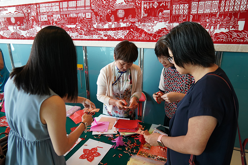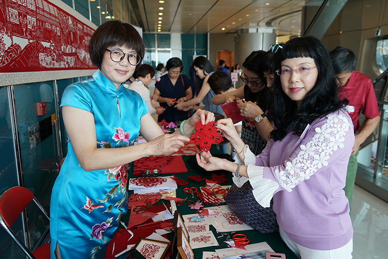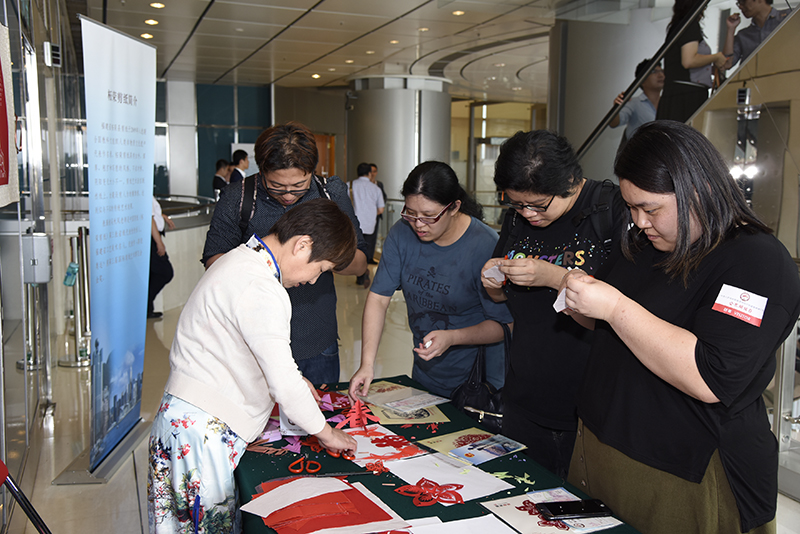 来自福建的剪纸艺术家与来宾互动。(图片来源:中央政府驻港联络办)