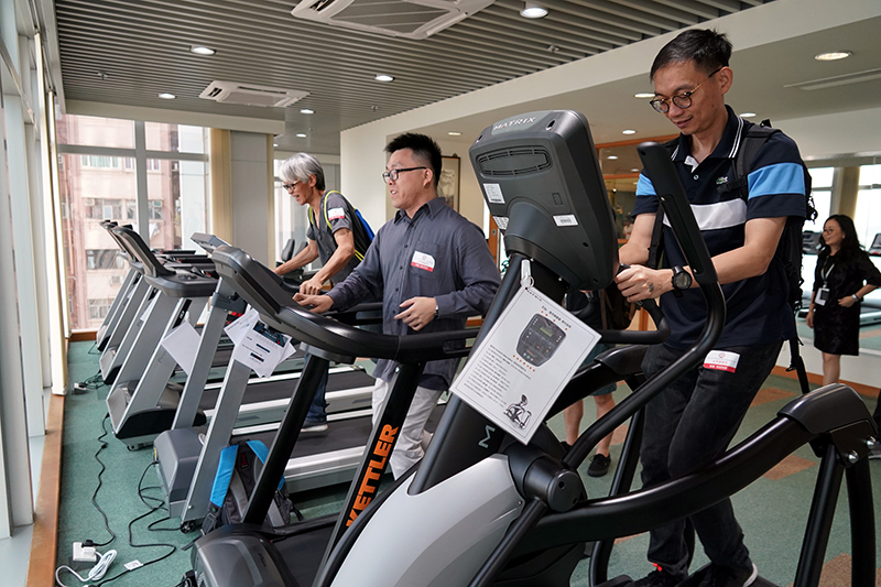 来宾在我办文体活动室体验。(图片来源:中央政府驻港联络办)