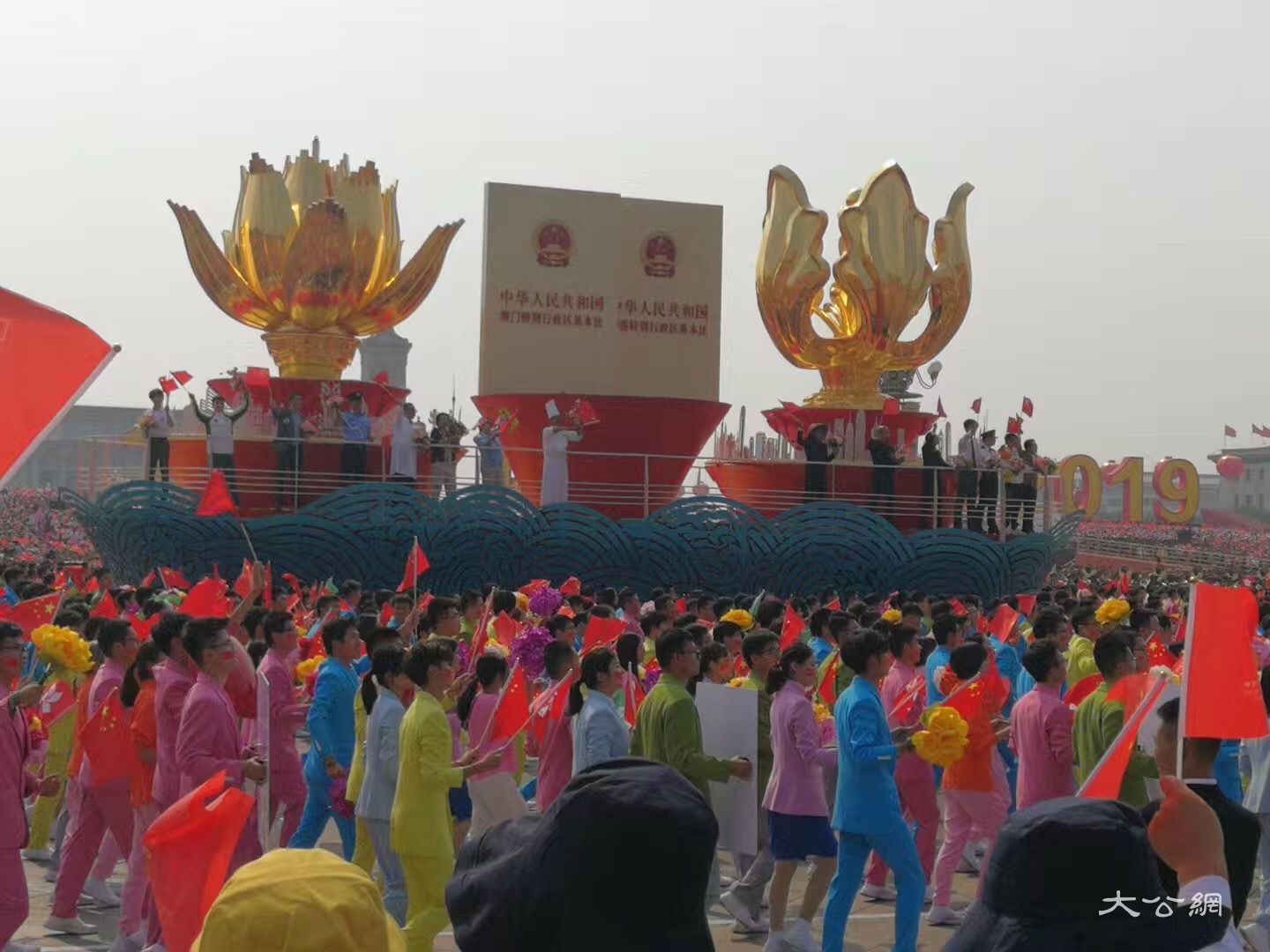 2019年10月1日上午,庆祝中华人民共和国成立70周年大会在北京天安门广场隆重举行。在这场举世瞩目的大会中,以“同心共筑中国梦”为主题的群众游行充分展现了新时代中国人民的精神面貌。引人瞩目的是,此次群众游行活动从群众中来,到群众中去,实现对群众游行本质的回归,其中400多名港澳台同胞、海外侨胞、外国友人参与其中;游行总撰稿讲述提议将香港的金紫?;ㄓ氪戆拿诺慕鹆ㄗ魑耙还街啤辈食档闹魈逶煨偷饶缓笙附诹钊硕?、振奋。