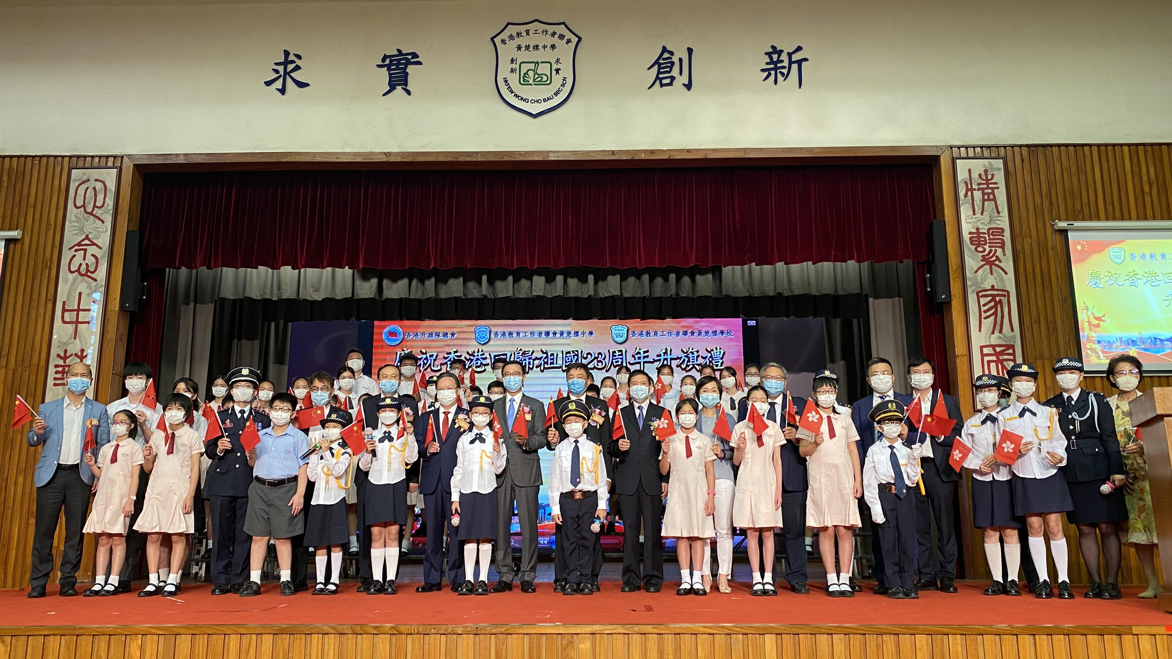 本网讯 7月1日,香港升旗队总会在香港教育工作者联会黄楚标中学举办庆祝香港回归祖国23周年升旗礼。我办副主任谭铁牛、特区政府教育局局长杨润雄、香港教育工作者联会会长黄均瑜等出席并担任主礼嘉宾,近200名师生参加活动。