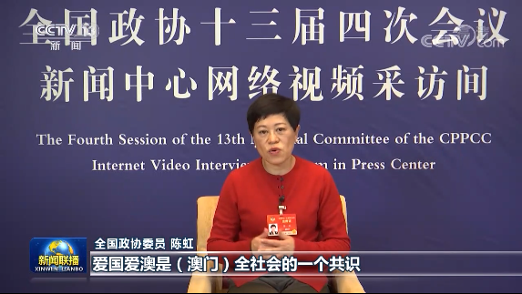全国政协委员 陈虹:爱国爱澳是澳门全社会的一个共识。从幼儿园开始我们就是从情感上面要我们小孩子认同自己的国家。升国旗、唱国歌,另外小学高年级、中学、大学等等,都要把宪法跟基本法纳入到课堂当中,让他知道只有“一国”才有“两制”。这样子我相信同学们对“爱国者治港”也好,“爱国者治澳”,有更进一步深刻的理解。