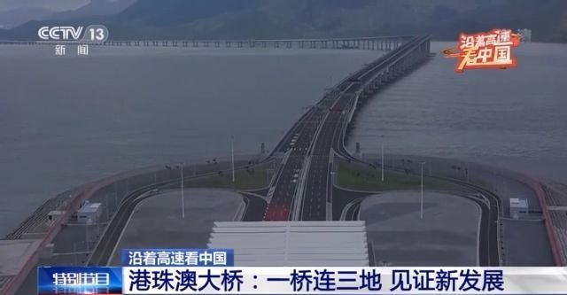 总台央视记者 王世玉:说话间,也就不到一分钟,我们就来到了港珠澳大桥的第一个标志点,就是九洲航道桥。在前方我们还会经过江海桥、青州桥、西人工岛,然后经过海底隧道到达东人工岛,再往前就可以抵达香港口岸了。