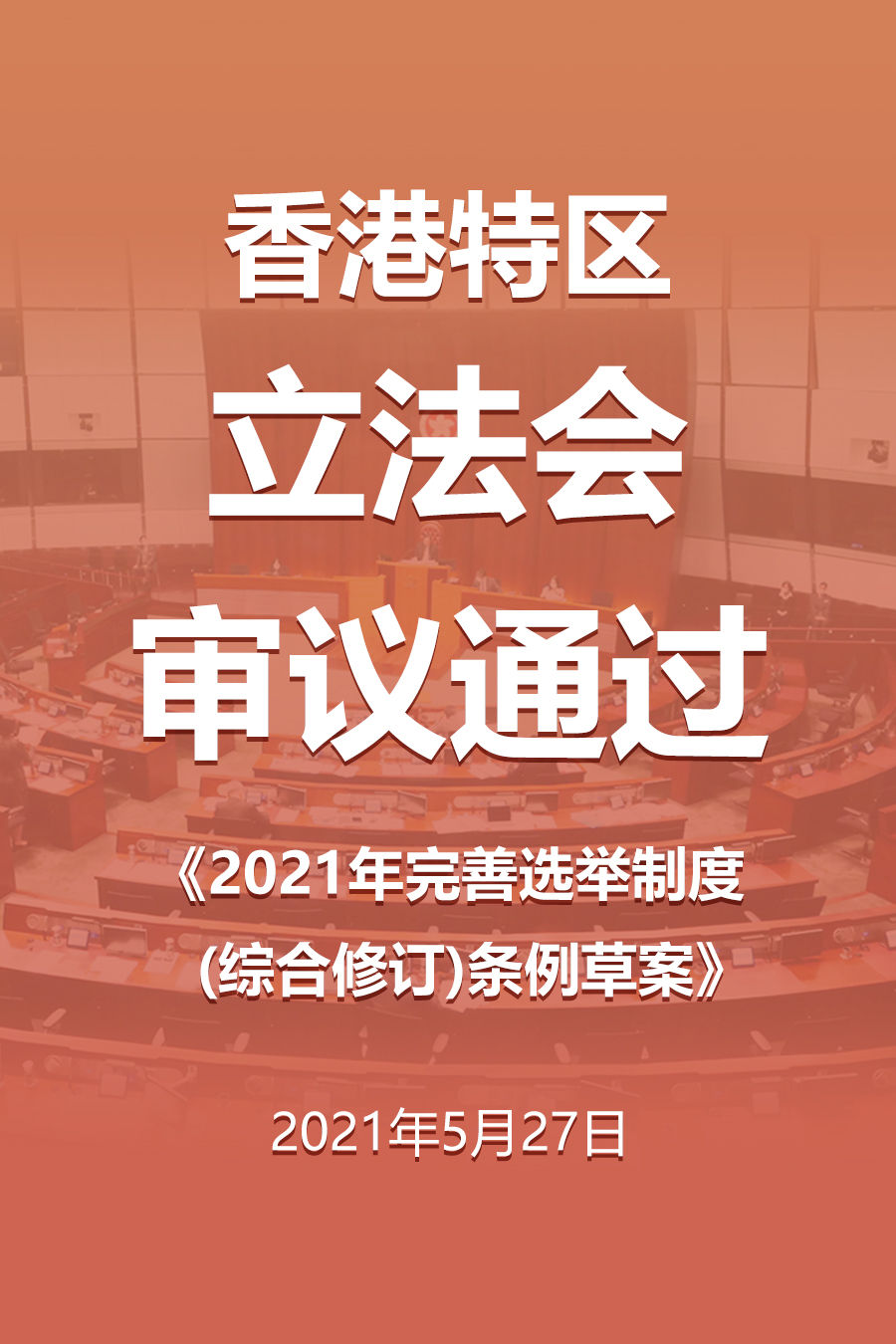 高票通过!5月27日,香港特区立法会三读通过《2021年完善选举制度(综合修订)条例草案》(下称“条例草案”),相关条例将于5月31日刊宪生效。这标志着完善香港特别行政区选举制度的本地立法工作全面完成,是依法治港、拨乱反正的又一重大制度成果。