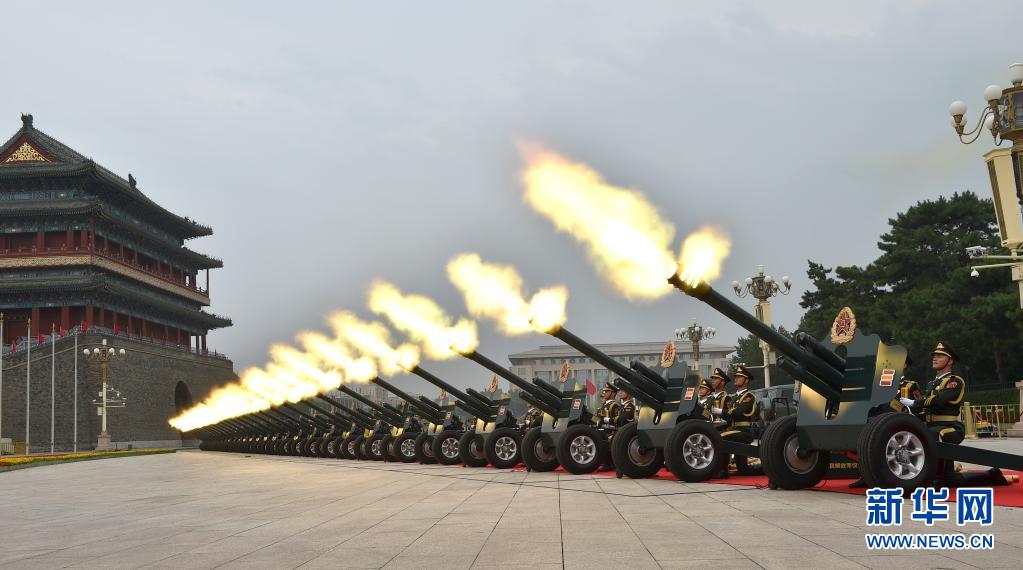 7月1日上午,庆祝中国共产党成立100周年大会在北京天安门广场隆重举行。这是礼炮鸣响。(新华社记者 孟涛 摄)