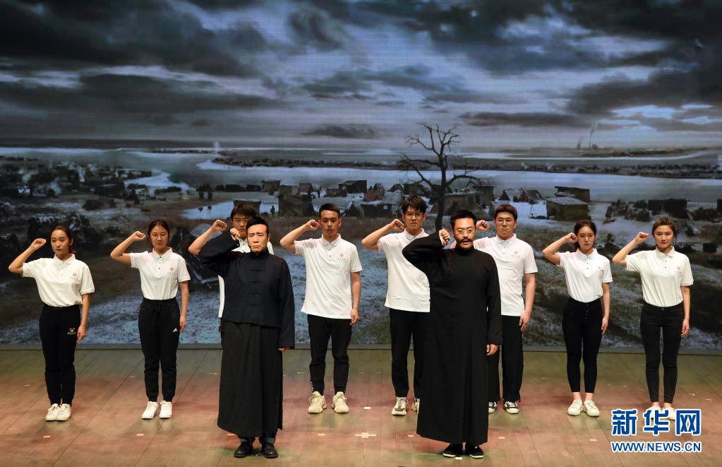 电视剧《觉醒年代》主创团队走进北京大学,剧中主要演员与北大学生同台演出(4月20日摄)。(新华社记者 任超 摄)