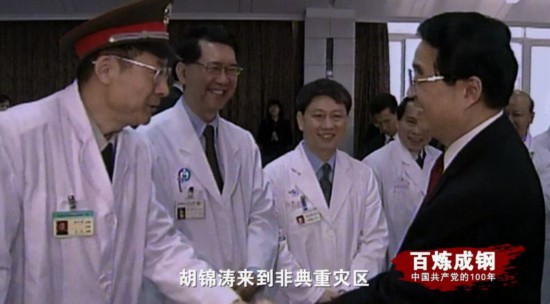 4月上旬,胡锦涛来到非典重灾区广东考察灾情,研究对策。在党中央、国务院坚强领导下,举国上下紧急动员,坚持群防群控,携手共克时艰,有效控制了非典疫情。6月,世界卫生组织宣布解除对北京的旅行警告,我国抗击非典取得阶段性重大胜利。
