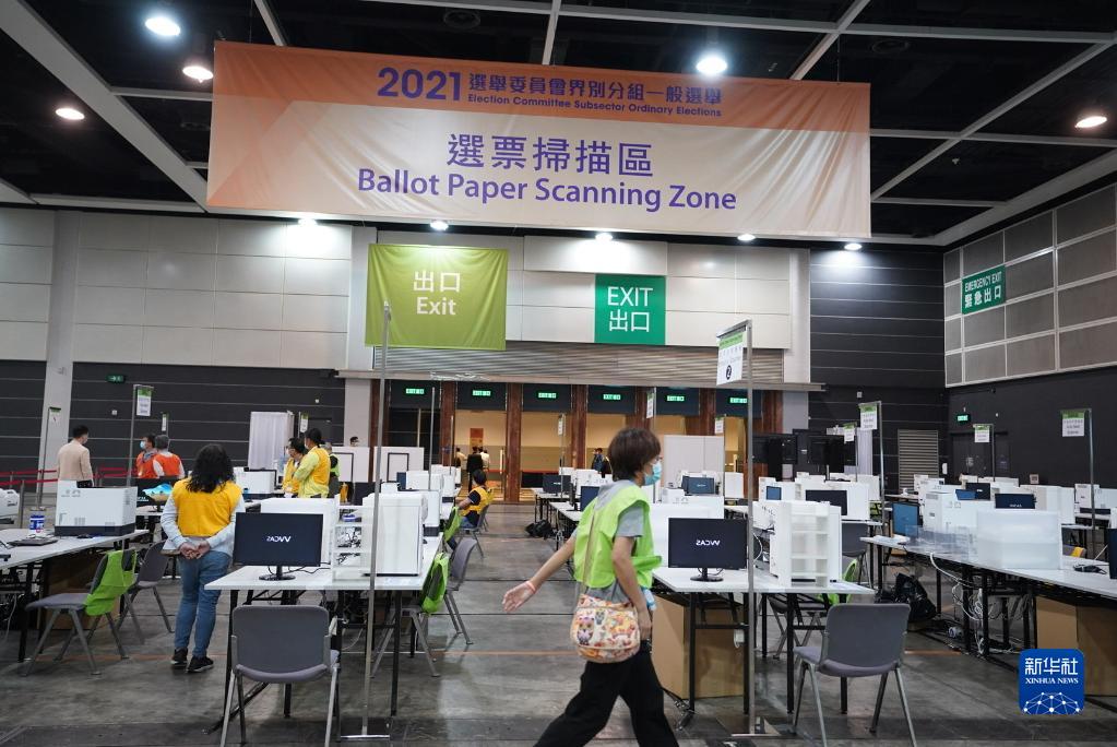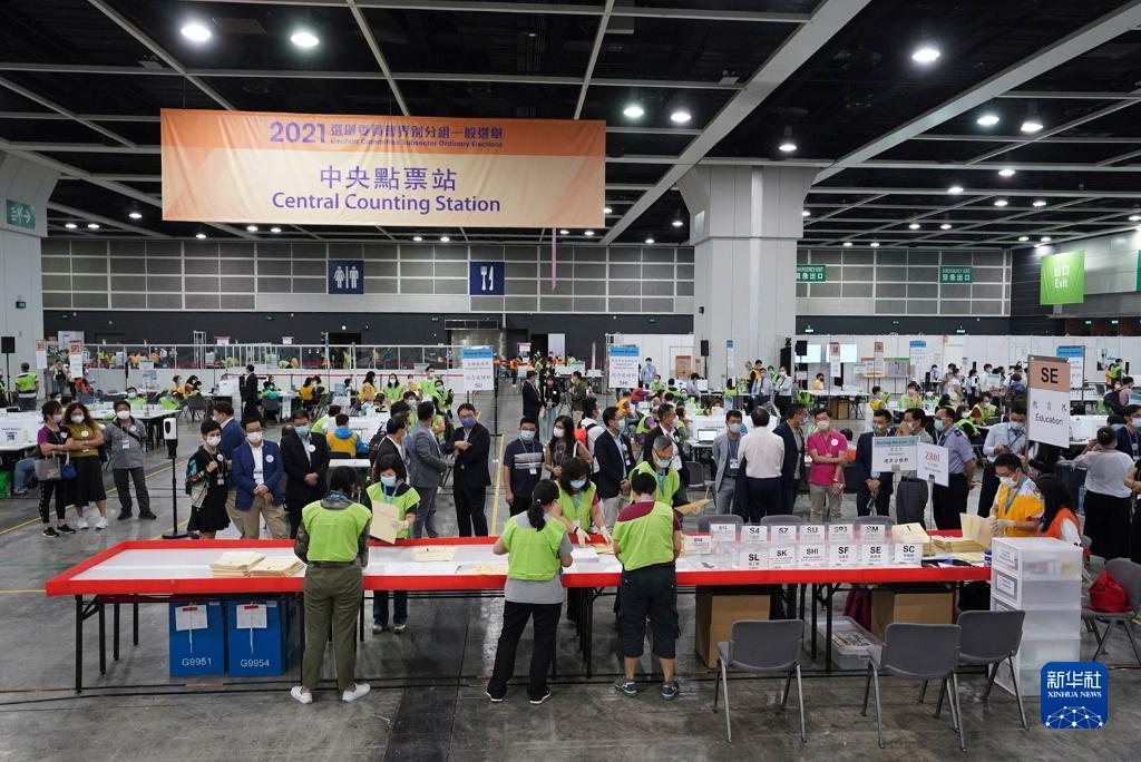 9月20日,香港湾仔会展中心,2021年香港特别行政区选举委员会界别分组一般选举点票结果经过一夜的紧张工作后,在清晨揭晓。
