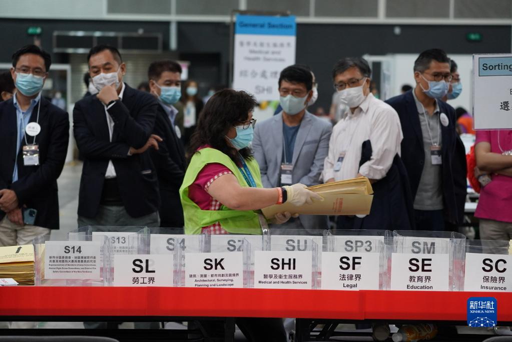 9月19日,2021年香港特别行政区选举委员会界别分组一般选举举行。这是工作人员开始点票工作。(新华社记者 吕小炜 摄)