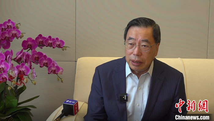 图为梁君彦受访。(中新社发 罗嗣昱 摄)