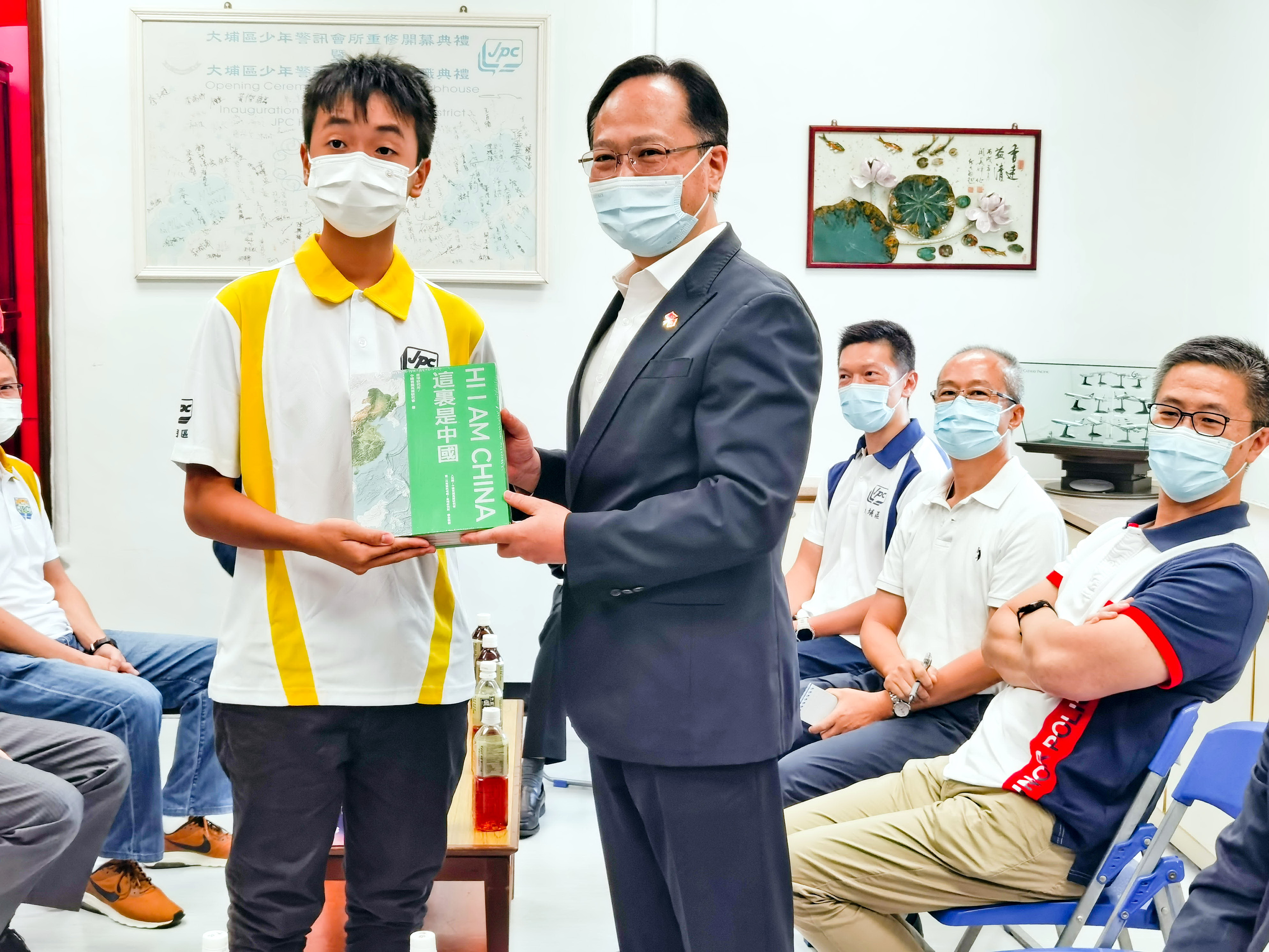 陈冬副主任向少年警讯学员赠书《这里是中国》。(图片来源:中央政府驻港联络办)