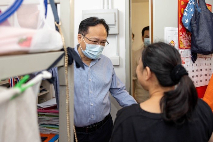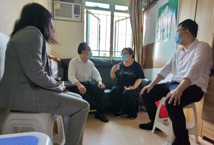 谭铁牛副主任在新界葵青走访住房困难市民。(图片来源:中央政府驻港联络办)