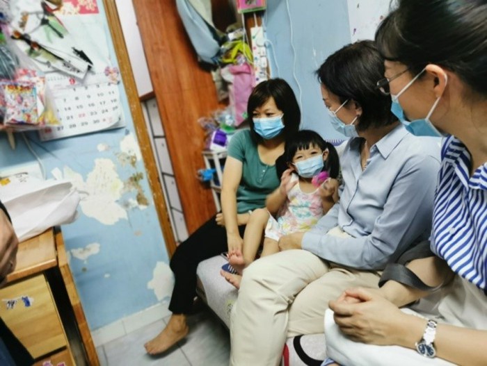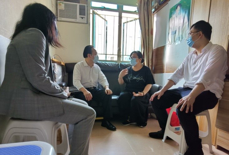 卢新宁副主任看望土瓜湾劏房住户。(图片来源:中央政府驻港联络办)