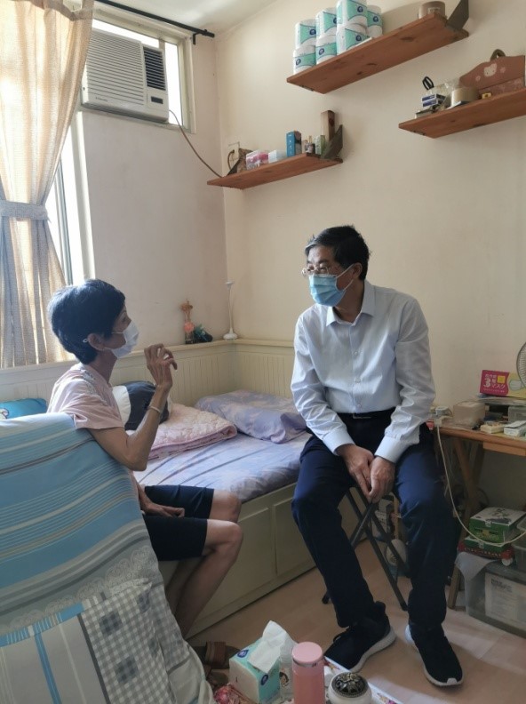 王松苗秘书长在新界沙田社区探访住房困难市民。(图片来源:中央政府驻港联络办)