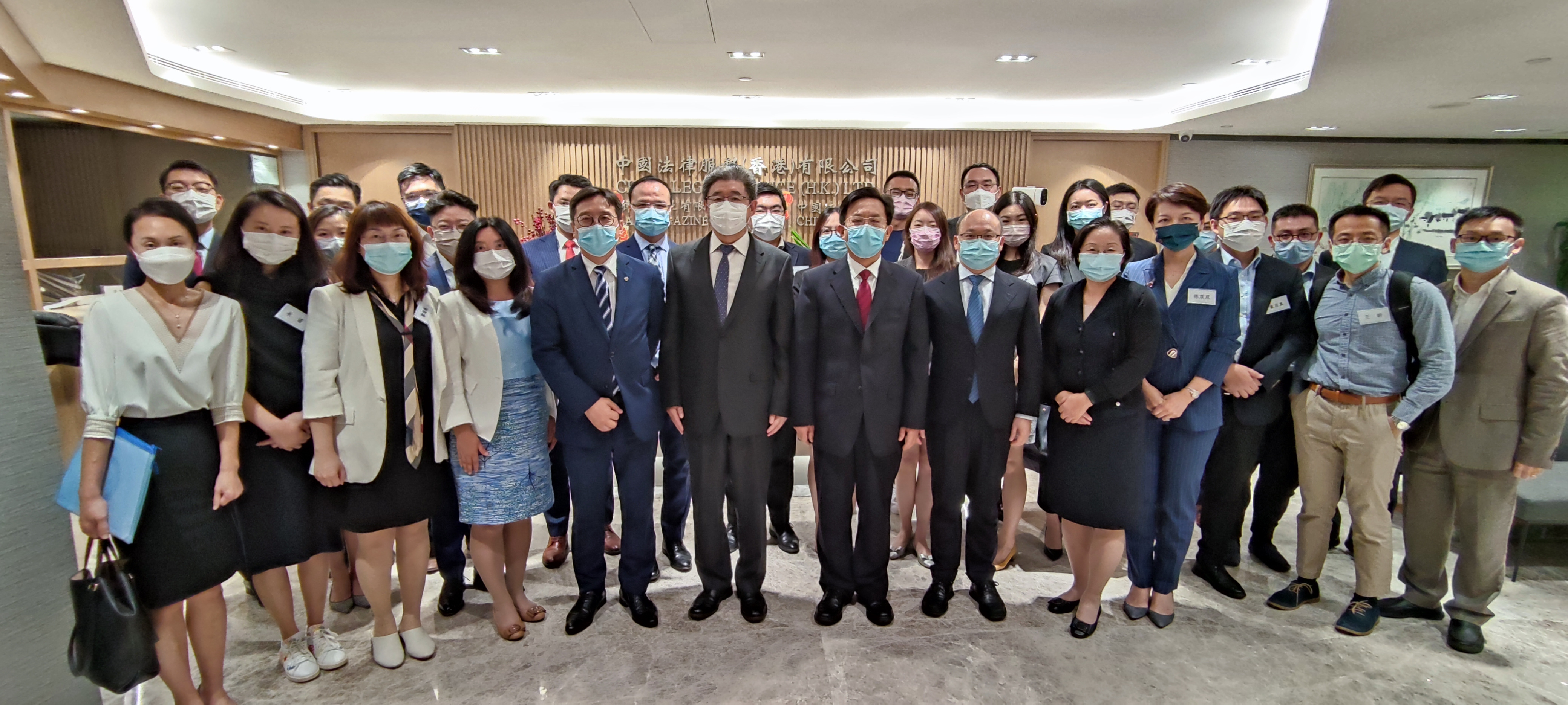 王松苗秘书长一行与“港漂”律师们合影。(图片来源:中央政府驻港联络办)