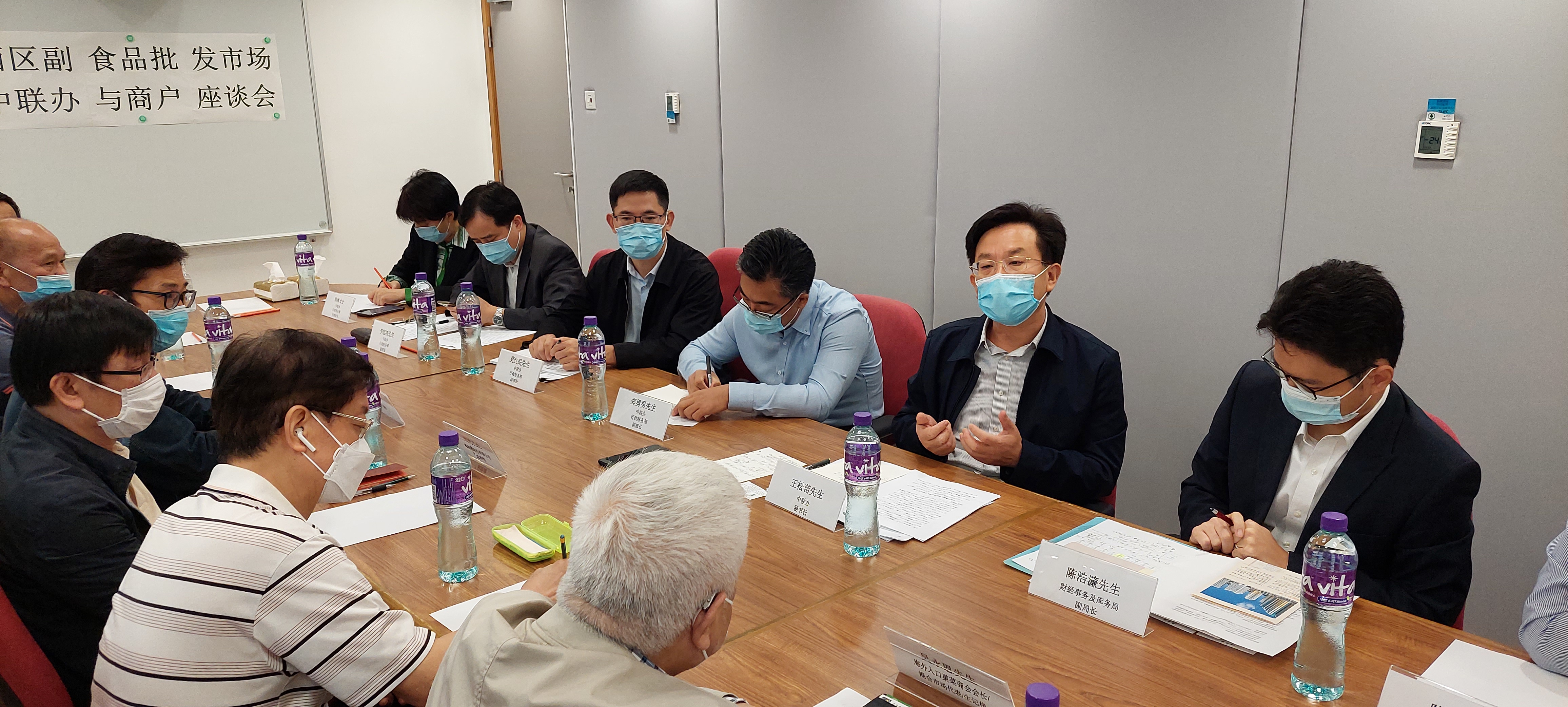 8日上午,调研组与走访过的几位店主、批发行业代表和特区政府有关部门代表召开座谈会,进一步听取困难诉求和意见建议?;嵘希蠹页┧?,围绕施政报告、改善住房、两地通关、跨境运输、食品检疫、行业升级、政府纾困等问题各抒己见、表达心声。香港食品委员会主席吴先生举例说,“内地的大闸蟹不能直接进香港,坐飞机到韩国转一圈后再进香港就可以,因为内地和香港在食品卫生标准方面尚未实现统一和互认,这直接推高了香港大闸蟹的进口价格”。同时,也有几位商户表示,两地市场如高度融合,香港商户要与内地同行竞争,压力也不小。