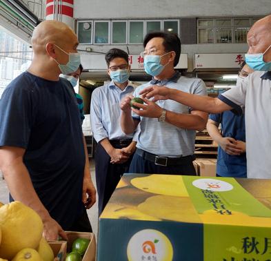 王松苗与果品商户交流。(图片来源:中央政府驻港联络办)
