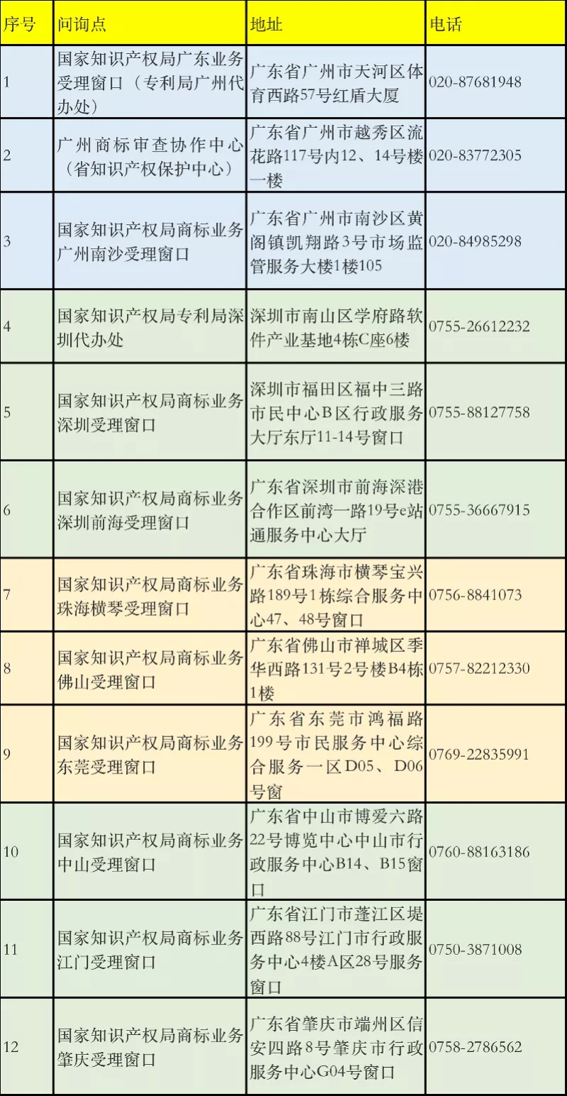 为深入贯彻《粤港澳大湾区发展规划纲要》,全面强化粤港澳大湾区知识产权合作,广东省市场监督管理局(知识产权局)日前发布通告,自10月20日起,在大湾区内地8个城市的12个知识产权政务服务窗口设立香港特别行政区知识产权问询点,面向公众开展香港知识产权业务一般咨询服务。
