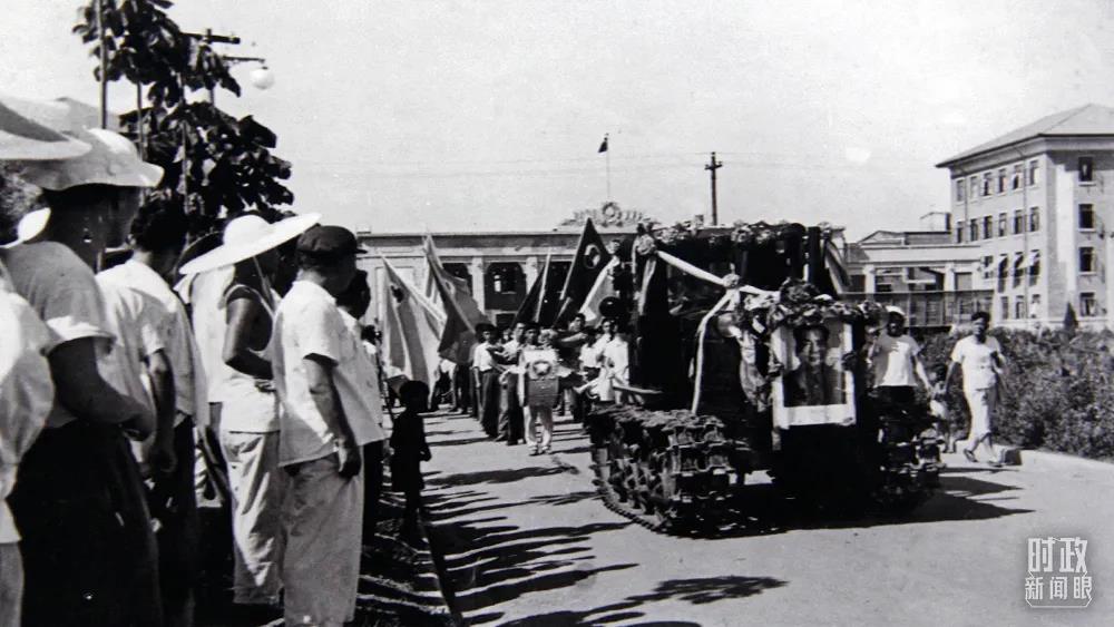1958年7月,第一台国产“东方红”牌拖拉机在洛阳拖拉机厂下线。(图/视觉中国)