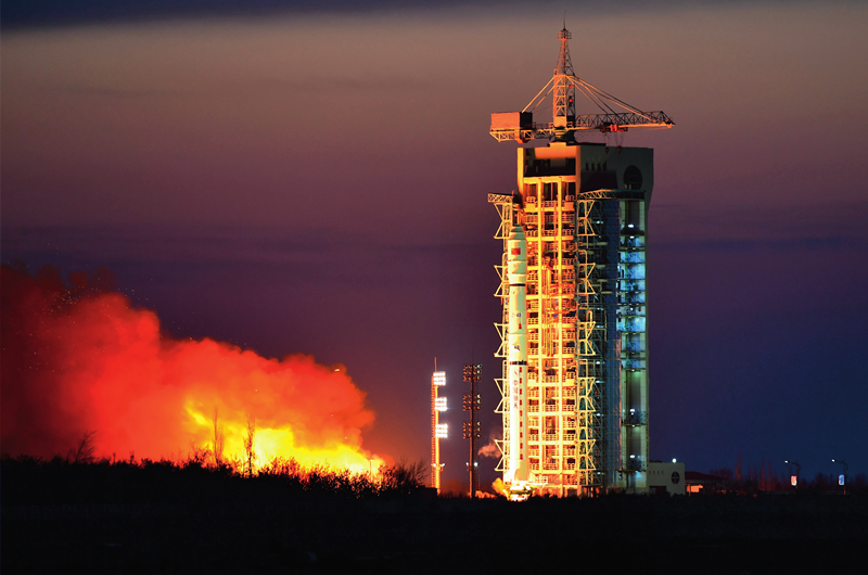 2021年12月10日8时11分,我国在酒泉卫星发射中心用长征四号乙运载火箭,成功将实践六号 05 组卫星发射升空。这次任务是长征系列运载火箭的第 400 次飞行(汪江波 摄)