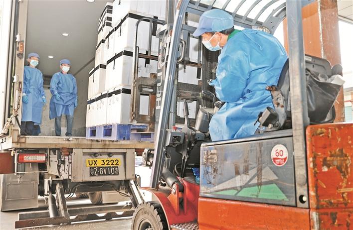 “2月1日至11日,平均每天2至3车共20多个品种的蔬菜运往香港,累计供港蔬菜超200吨?!鄙钲谑泻图宜呈狄涤邢薰竟└垡滴窀涸鹑诵づ扛嫠呒钦撸醋栽颇?、湖北等全国各地供港基地的蔬菜运达深圳后,该公司先进行快筛检测,合格方可入库,然后进行加工、包装等生产。作业车间每天消杀,工人们做好核酸检测和有关防护,确保供港蔬菜安全?!拔U舷愀凼卟斯┯Γ窘谧橹と思影嗉拥憬屑庸ど?,每天很早开工,忙到很晚才收工?!彼?。