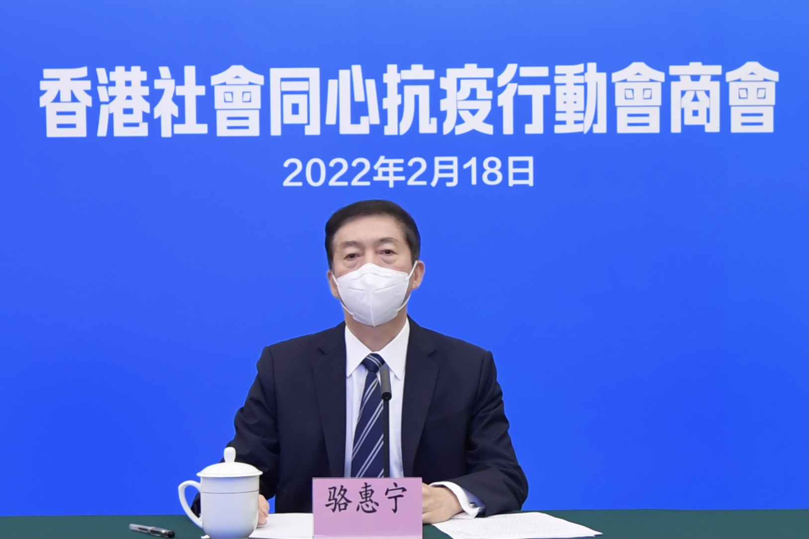 骆惠宁表示,在香港疫情暴发、抗疫形势异常严峻的紧要关头,习近平总书记对香港抗疫工作作出重要指示,提出“三个一切”“两个确保”的重大要求,充分体现了中央对香港同胞的深切关怀,对香港疫情形势的科学把握,对香港防疫抗疫的强力支持,为香港社会同心抗疫、共克时艰指明了努力方向、坚定了必胜信心、汇聚了强大动力。连日来香港特区各方面积极响应,行动起来。林郑月娥行政长官和特区政府表示切实担负起主体责任,全力推进抗疫工作。立法会高效审议通过第六轮防疫抗疫基金拨款申请,不少议员提出了建设性意见,体现了立法与行政互相配合、携手抗疫的担当作为。医护人员在抗疫一线,不辞辛劳,努力守护市民健康安全。爱国爱港政团社团、驻港中资企业等也各尽其能,倾力为抗疫提供支援服务。