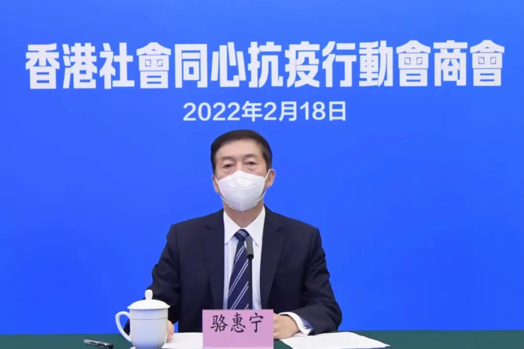 香港社会各界同心抗疫会商会在港举行。香港中联办主任骆惠宁主持会议并讲话,号召社会各界团结一致、同心抗疫,谋划推出支持特区政府防疫抗疫的16项举措。