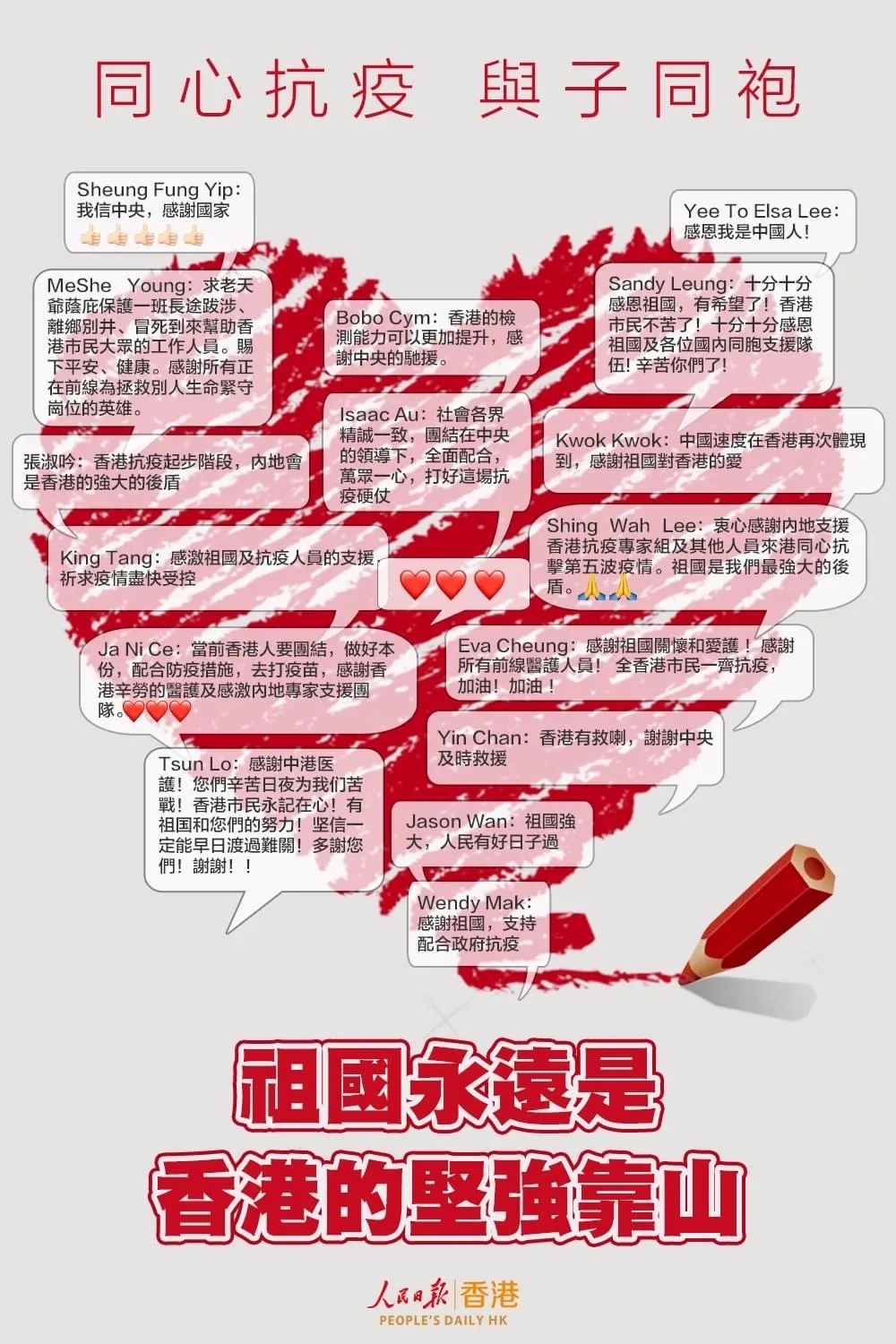 “最冷的天,来了最暖的人!”“感动到要哭了,您们就是我们的定海神针!”中央援港抗疫举措陆续推出,港人的“朋友圈”沸腾了。大家刷屏点赞,感恩中央和内地援港情谊。