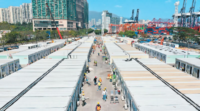 不过一周时间,香港青衣岛东面货柜码头附近的一处空地突然立起一排排白色箱体。在香港市民的期盼中,由驻港中资企业承建的青衣“方舱医院”已完成箱体安装,将于2月28日完成全部现场施工,可提供超过3800张床位。