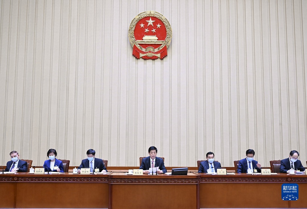 2月28日,全国人大常委会委员长栗战书在北京主持十三届全国人大常委会第三十三次会议闭幕会。在会议完成有关表决事项后,栗战书作了讲话。(新华社记者 张领 摄)
