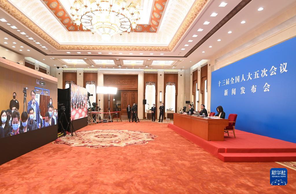 3月4日,十三届全国人大五次会议新闻发布会在北京人民大会堂新闻发布厅举行,大会发言人张业遂就会议议程和人大有关工作回答中外记者提问。(新华社记者 陈晔华 摄)