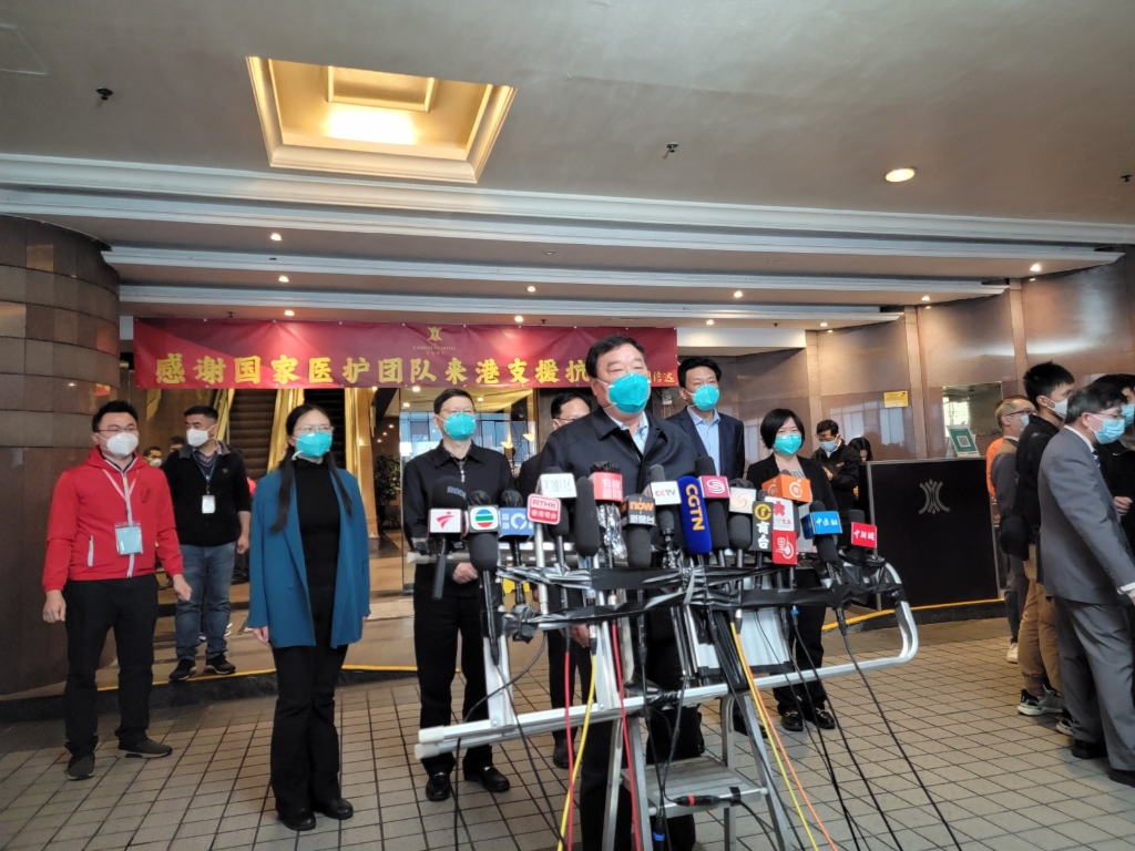 在这几天的工作中,我们的着力点主要是了解情况:包括香港整个疫情的态势,香港所采取的防控措施和落地情况,特别是在医疗救助这一块的布局、资源以及医疗系统的应对情况等,围绕著数据的一些分析和研判,围绕著一些措施的组合和落实进行了讨论和交流。