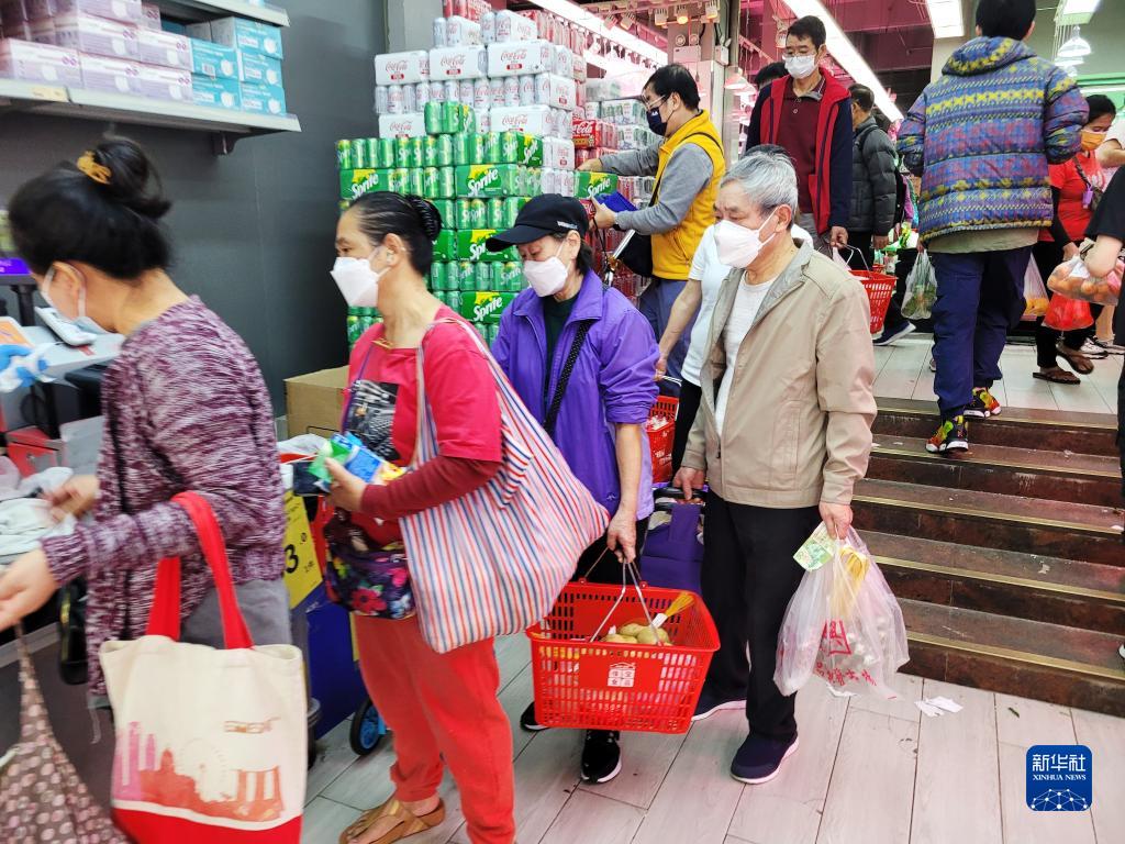 3月1日,市民在香港红磡一家超市排队结账。(新华社记者 王申 摄)