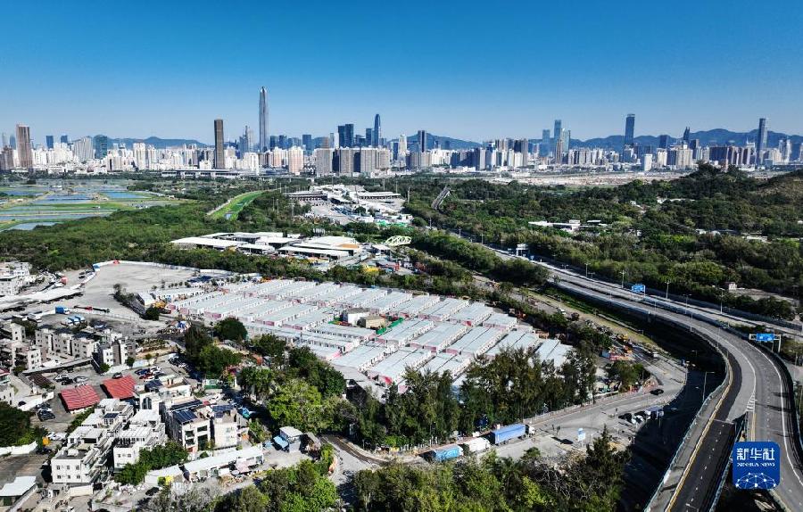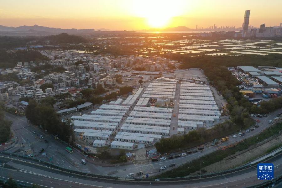 这是3月8日拍摄的香港新田方舱医院(无人机照片)。(新华社发)