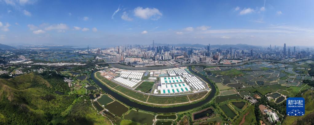 这是中央援港应急医院和落马洲方舱设施项目全景图(无人机照片,5月6日摄)。(新华社记者 梁旭 摄)