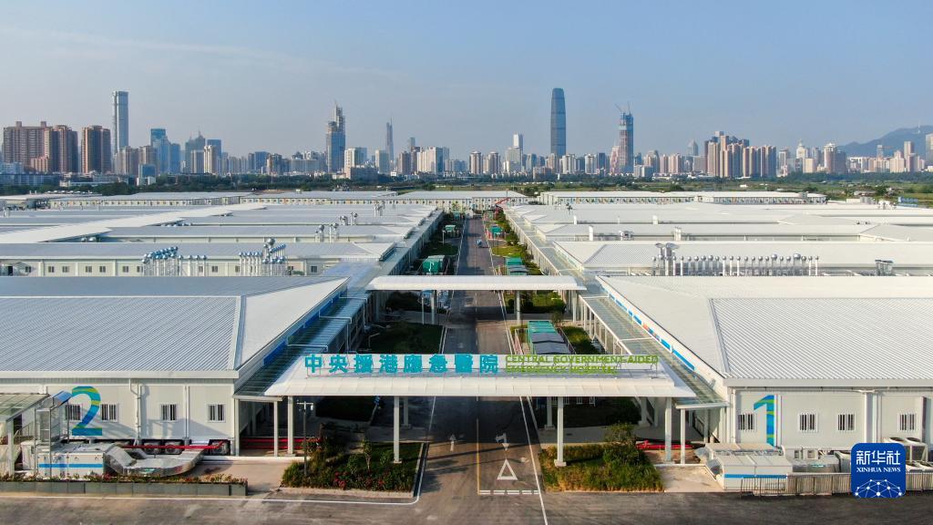 这是中央援港应急医院和落马洲方舱设施竣工交付仪式现场(5月6日摄)。(新华社记者 梁旭 摄)