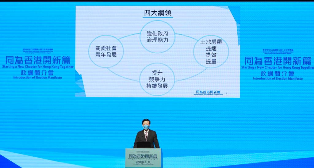 4月29日,李家超公布竞选政纲。(新华社记者 吕小炜 摄)