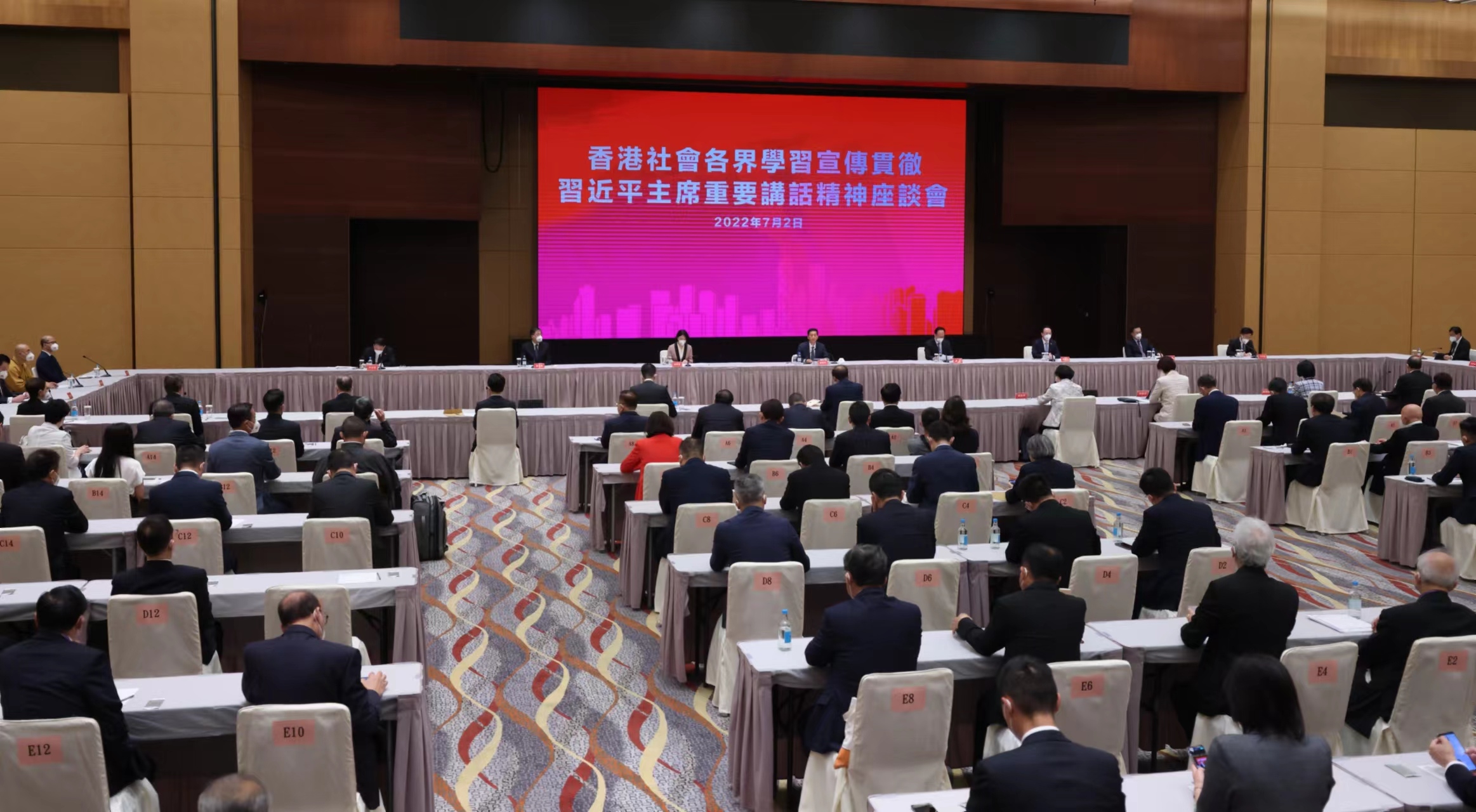 本网讯 7月2日上午,中央政府驻港联络办举办香港社会各界学习宣传贯彻习近平主席重要讲话精神座谈会。中央政府驻港联络办主任骆惠宁出席并作导读发言,港区全国人大代表、全国政协委员、香港主要政团社团代表、驻港中资企业负责人、社会各界代表人士,以及中联办有关负责人等共200余人参加。中联办副主任陈冬主持座谈会。