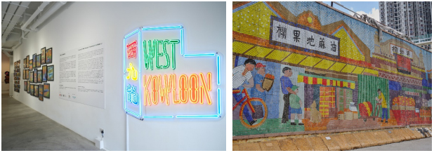 西九龙艺术展(左)、油麻地果栏(右)。(图片来源:香港旅游发展局)